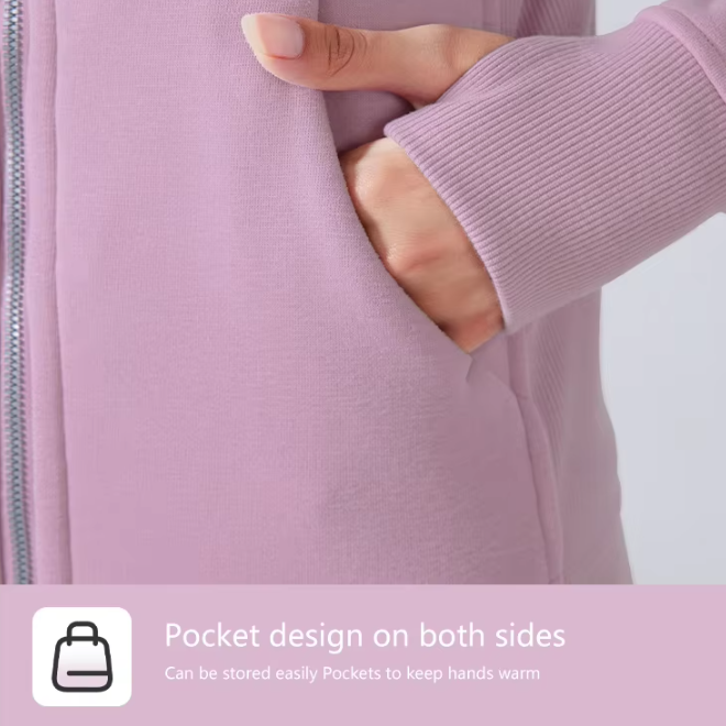 Feature: Hanging smooth zipper, Warm pockets on both sides, Extended windproof thumb hole, Hip-length ribbed hem.