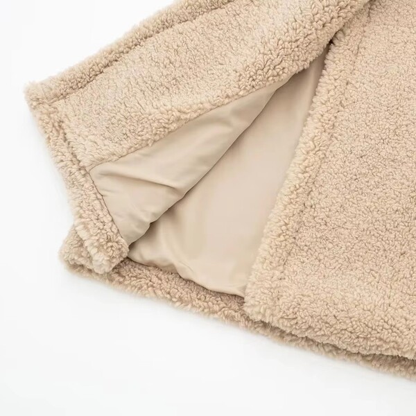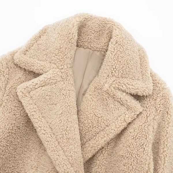 Design: pockets,long sleeves, lapel collar,faux shearling