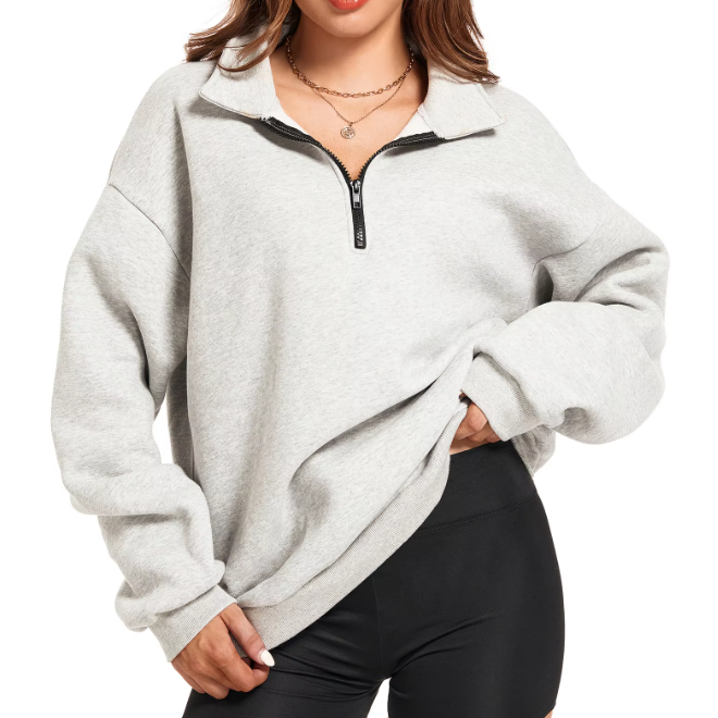 Oversized Long Sleeve Quarter Zip Winter Sweatshirt for Women