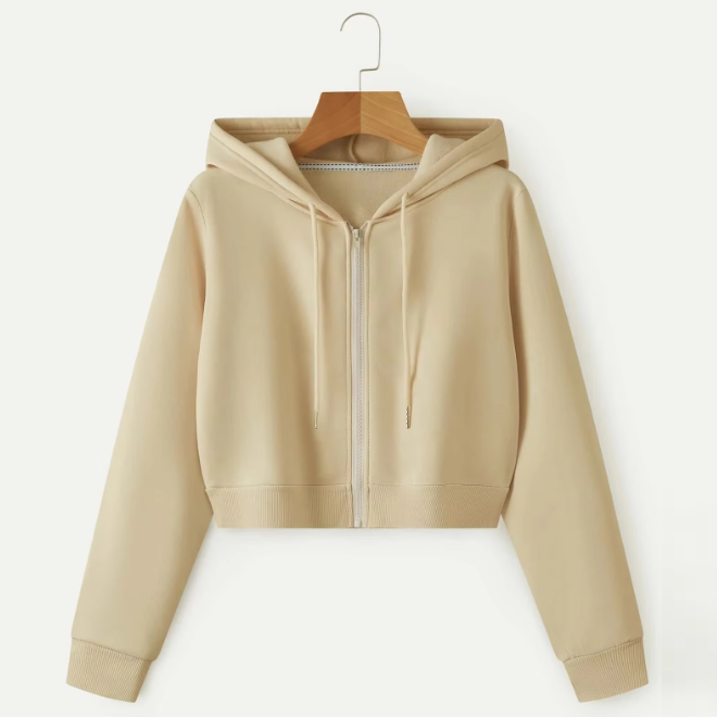 2 Pcs Womens Fashionable Fleece Zipper Cropped Hoodie