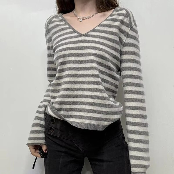 3Pcs Womens Knit Striped Cute Slim Pullover Sweater