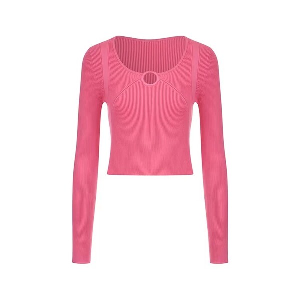 2Pcs Pink Cutout Elegant Ribbed Knit Bottom Shirt