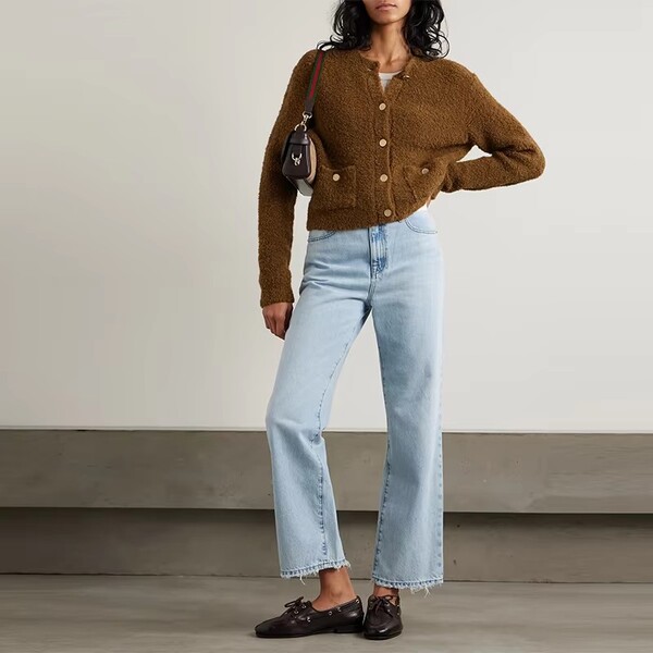 Womens Fashion Crew Neck Knit Cardigan Sweater