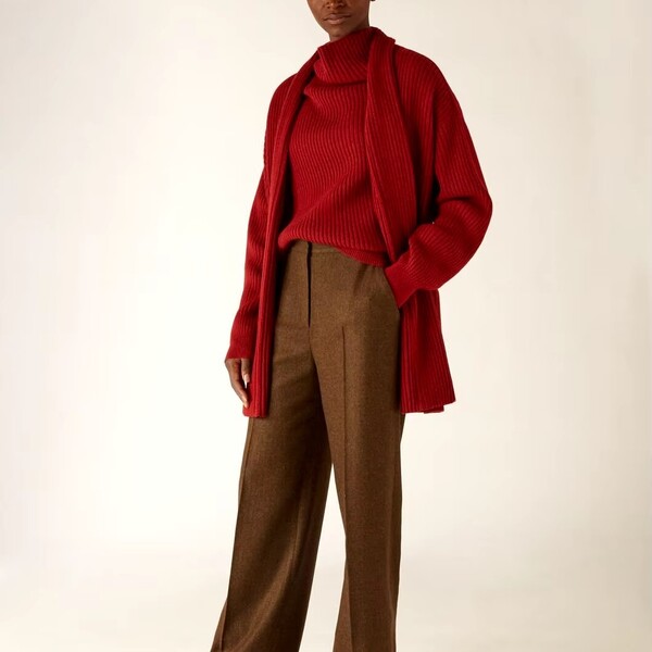 2Pcs Fall and Winter Brown Crew Neck Knit Cardigan