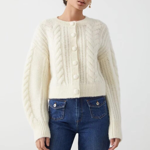 Womens Thick Chunky Puffy Sleeve Cardigan Sweater